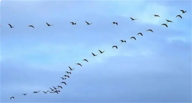 大雁的队形一直都会不停的变化,会伴随着风向而做出改变,如果大雁的领导者在中间,这就导致整个队伍会变成人字形。不要以为大雁往南飞可以随意的完成,这本身就是一个远征,需要长途跋涉,仅仅靠一只大雁是没有办法完成的。在飞行的过程中,领头的大雁体力消耗比较大,还是大雁交换位置,这就意味着一会儿就变成人字形,一会就会变成一字形。当然这也是一种本能的表现,可以有效预防外在的伤害,带来比较好的效果。