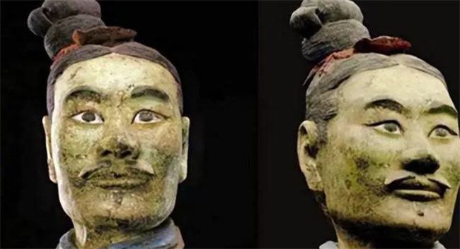 然而,兵马俑中的“绿面俑”却引发了无数猜测。1999年,专家在二号坑中发现这尊与众不同的兵马俑,其面部和颈部呈绿色,双耳为淡绿色。专家们猜测可能是工匠失误导致面部颜色不同,或是其代表特殊的少数民族成员,亦或是傩人信仰的表现。然而至今,尽管有诸多猜测,仍无法得到确切解释。
