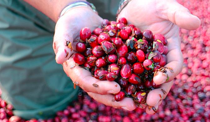 蔓越莓需要特殊的环境及气候条件,因此全球产区不到4万英亩,产量有限、十分珍贵,因而有“北美的红宝石”之称。