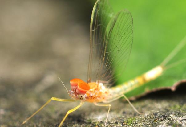 蜉蝣幼虫主要生活在淡水湖和溪流里面,因为它们身体里面还具有供呼吸的气管鳃,所以能适应水里面的生活。所吃的食物有藻类和水生植物,能在水里面攀爬和匍匐前进。幼虫期一般是一个月和一年的时间,有的还是一年以上的时间,等长大成年的时候,就会爬到植物和石头上。等到日落的时候幻化成亚成虫,然后经过一天的时间幻化成成虫。