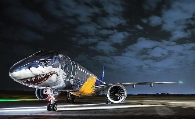 飞机制造商巴西航空工业公司于2018年在其新型E190-E2喷气式飞机上创作了以鲨鱼为主题的涂装。