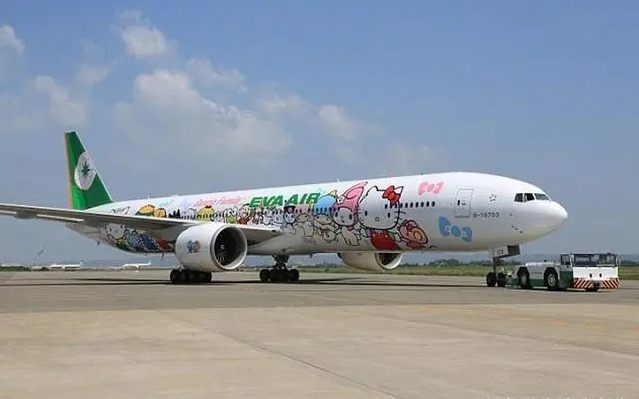 台湾航空公司Eva Air通过一款以Hello Kitty为主题的飞机纪念标志性卡通人物Hello Kitty诞辰40周年。这架波音777装饰着色彩缤纷的猫咪,机舱内也有一系列可爱的特色装饰,比如和主体同款的枕套和猫窝枕头。