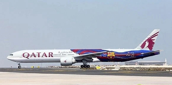 卡塔尔航空从2013年以来一直受到巴萨的赞助,2014年在旗下的一架波音777飞机上进行了巴萨主题的装饰,印上了巴萨的队旗和队徽,还写着标语“一个团结了全世界的球队”。飞机采用了巴萨队旗上的渐变图案进行彩绘,起飞的时候仿佛图案在流动,而巴萨标志性的红蓝色则覆盖了一半的机身。