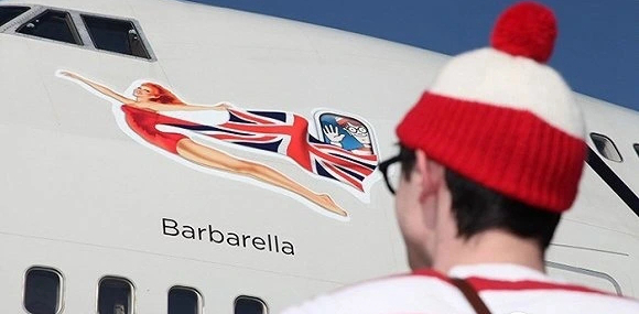 维珍的老板Richard Branson亲自打扮成游戏《寻找沃尔多》中的沃尔多,来庆祝旗下的一架同主题飞机的发布。这样的设计是为了纪念这个角色问世25周年。你需要睁大你的眼睛去找出沃尔多,因为它隐藏在飞机的各个角落。