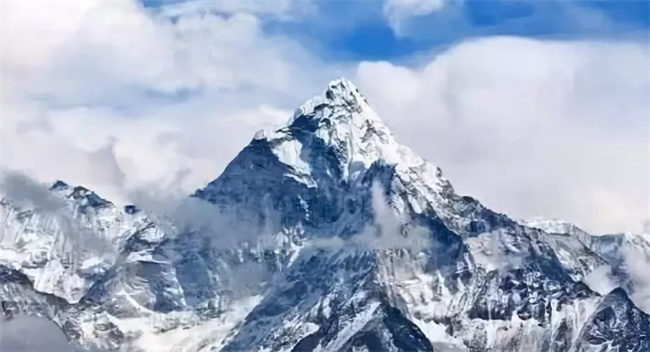 这是世界上高度第一的山脉,从外形来看犹如是一把利剑,直接就会处理在大地上。因为高大其中有一半都是在云层之上,看上去更加高大雄伟,就好像是矗立在云间。远看就如同是一眼望不到头的天,却在古代的时候有人认为这就是圣山,人们对于这一座山有着敬畏之心,所以取名为珠穆朗玛峰,主要的意思就是代表着大地之母,能够有效体现出人们的一种敬畏之心。是人们对于大山的尊重,对大山的崇高敬畏。