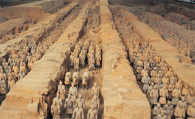 兵马俑位于我国陕西省西安市临潼区秦始皇陵内,是秦始皇的陪葬品。兵马俑的发现可以追溯到1974年,当时一位农民在地里挖井时意外发现了这些兵马俑。此后大规模的挖掘工作开始展开,目的是发掘出更多的兵马俑,以便研究和展示。兵马俑需要有大量的专业的考古人员进行开发挖掘,不仅要投入大量资金及物资,还要建造工程设施、购买挖掘和保护设备等,这些投入的成本非常高,需要长时间积累和耗费。挖掘兵马俑还需要面对保护难题,兵马俑的材质主要是泥质,十分脆弱。在挖掘过程中,如果不加保护,这些兵马俑很容易受到损坏或者腐蚀。因此在挖掘过程中,需要采取一系列的保护措施,以确保兵马俑不受损坏。