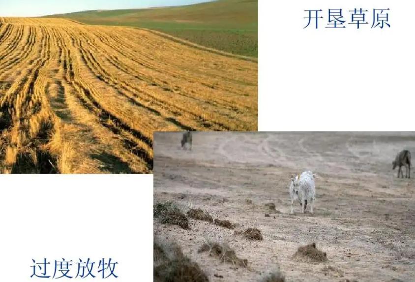 不合理的放牧,这在内蒙地区很常见,一些内蒙的草原,如今已经有沙漠化的迹象,就是过度放牧导致的,草原长得没吃的快,风沙以来,全部被埋。