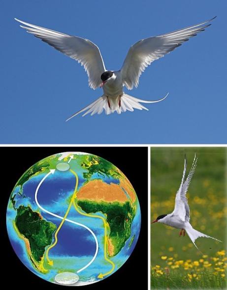 每年的7-8月份是北极的夏季,也是北极燕鸥的繁殖期,随着繁殖期一过,北极迎来了冬季,此时北极燕鸥就要向南迁徙了,经过3个多月的飞行,它们会最终到达南极洲附近,虽然南极很冷,但是每年的11月-3月是南极的暖季,它们会再次生存,也就是说一年内,北极燕鸥过了两个夏天。当暖季要结束时,北极燕鸥会再次起航,返回自己的繁殖地,这一来一回就相当于绕了地球一圈,单程的距离达到了19000公里。