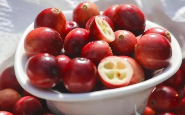 蔓越莓是一种表皮及果肉都是鲜红色,生长在矮藤上的小圆浆果。可做水果食用,具有独特的酸甜口味,清新爽口;也可用来做成果汁、果酱等。
