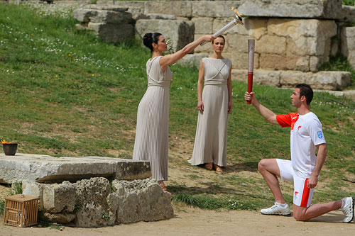 从1936年柏林奥运会开始,每届奥运会前,在奥林匹亚的赫拉神庙遗址前都要举行庄重的点火仪式,国际奥委会、奥运会主办地和当地的官员都要出席。身着古装的希腊少女用聚光镜采得火种,然后用火炬传到雅典,再由雅典传到主办城市。