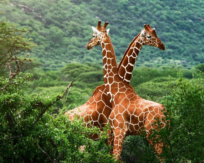 长颈鹿脖子太长了,所以长颈鹿蜷曲着脖子睡觉。