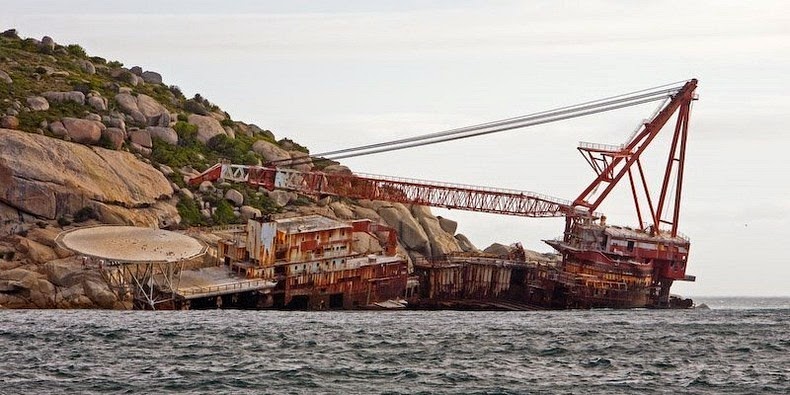 1). Boss 400是法国制造的起重船,搁浅在南非的毛利湾。它当时是非洲最大的起重船,由于一场风暴触礁。尽管曾经尝试过拖船,但由于费用高昂而被迫中止。