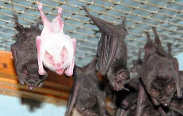 普通蝙蝠都是浓淡不一的褐色或黑色,这只白色的蝙蝠好不容易才能合群