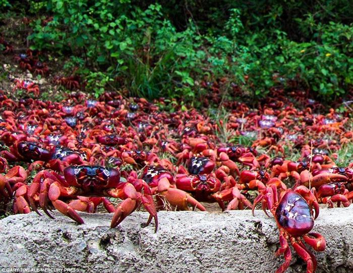 据英国《每日邮报》12月1日报道,澳大利亚圣诞岛红蟹迎来了一年一度的大迁徙,它们离开丛林中的巢穴,迁徙到海边进行交配和产卵。据悉,圣诞岛上大约有1200多万只红蟹。到了它们迁徙的高峰期,甚至把公路都淹没在一片鲜艳的红色之中。