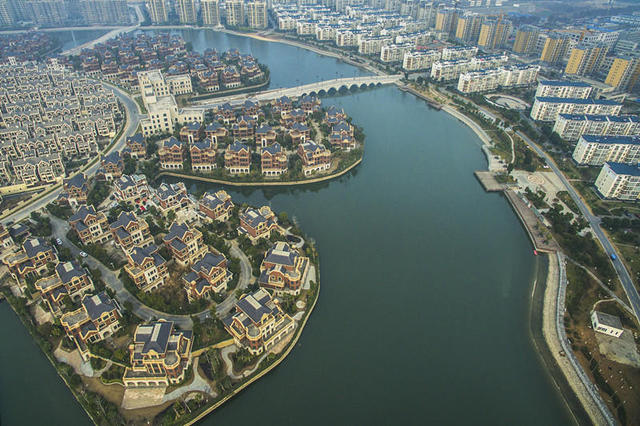 2015年12月30日,记者俯拍江苏丹阳市丹北镇界牌新村农民集中居住区,该居住区规模宏大,景观壮美,远观似威尼斯水城。