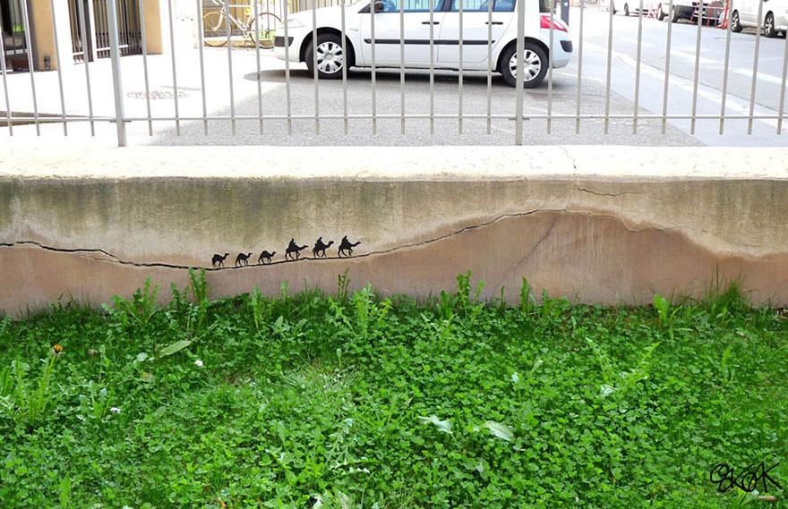 街头艺术是通常意味着破坏环境,吸引了我们的注意力。但对艺术家来说是实行特殊的技术使他们的艺术作品能更吸引眼球,更能加剧人们的注意力。