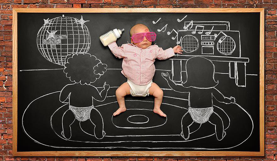 安娜,一位才华横溢的摄影师也是两个孩子的母亲,创造了一组可爱的婴儿照片,通过这组照片似乎我们可以看到他们的梦想是什么样子的。她用黑板描绘孩子的可爱照片给了她照片一种特殊的感觉,董事会也给了她这样的机会让她的画不断升华。