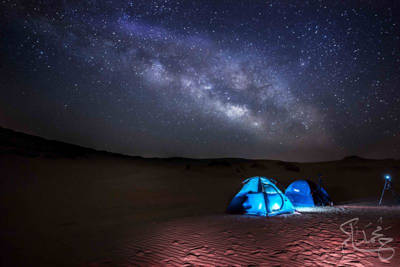 这是在鲸鱼谷上方的一条银河带,鲸鱼谷是世界上最重要的考古点,这里有着最古老的恐龙化石。在这里,只要你选对了时间,就可以看到沙漠和银河融合在了一起