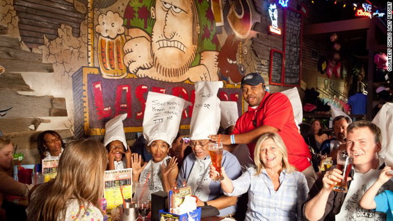 很多食客都抱怨曾受到服务员的侮辱,而在Dick's Last Resort却不会如此,因为这里的主题就是:员工扮演混蛋,食客自取其辱。你可能会戴上写了字的厨师帽,上面写着诸如“1美元跳大腿舞”之类羞辱你的字样,有些玩笑全无下限,服务生会给顾客指错的洗手间,对顾客大爆粗口。从旧金山到奥兰多,Dick's如今已遍布美国。就像其官方网站上写的一样,Dick's Last Resort以粗暴无礼而著称,而同时,可口的食物、冰镇酒品和满满的讽刺也是诱人的招牌。当然,千万别带你4岁的宝宝去,除非你想增加她的词汇量!