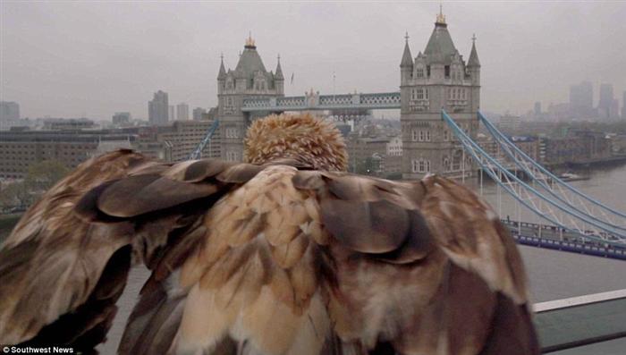 持续20秒的剪辑可以看到令人印象深刻的白尾鹰降落在观众面前的画面:底部的城市著名的塔桥。