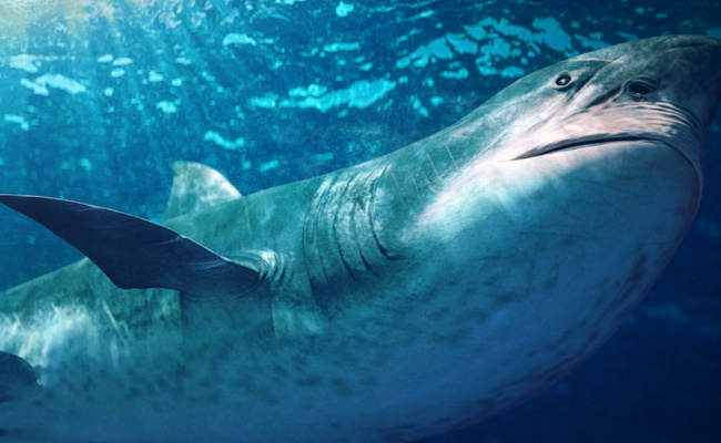 巨齿鲨的身躯非常巨大。根据化石记录,巨齿鲨的身长可达到15至18米,体重可能达到100吨以上。这种巨大的身体使得它们能够轻松捕食其他海洋生物,并在海洋中占据统治地位。巨齿鲨还拥有强大的咬合力量,可以将其牙齿嵌入猎物的身体并撕裂猎物组织。