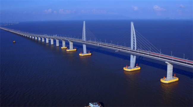 这是一座极其重要的桥梁,主体工程长度为35.578公里。在2009年12月15日开工建设,一期是在2017年完成,大桥整体投入的金额为1000多亿,大概是花了8年的时间建造。在这8年的时间,一直都在不停的努力。